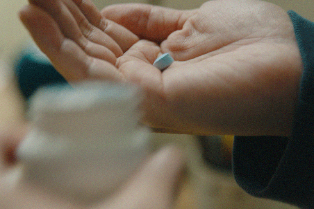 服薬と定期検査を生活の一部に取り入れ、自分自身の意思でセクシュアルヘルスを管理する姿が映し出される。