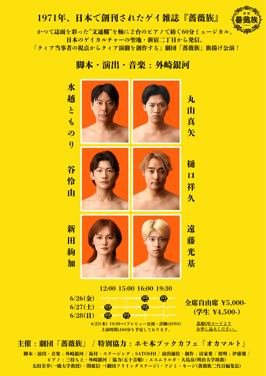 2026年は『薔薇族』創刊から55周年という節目の年であり、上演時期はプライド月間である6月。さらに会場は、新宿二丁目という日本のゲイカルチャーの中心地だ。
