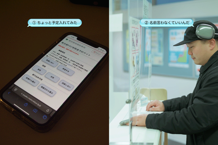① 最初にするのは予約。東京都の専用サイト「東京都HIV等検査予約サイト」から、行きたい場所と時間を選ぶだけ。数分で終わる。