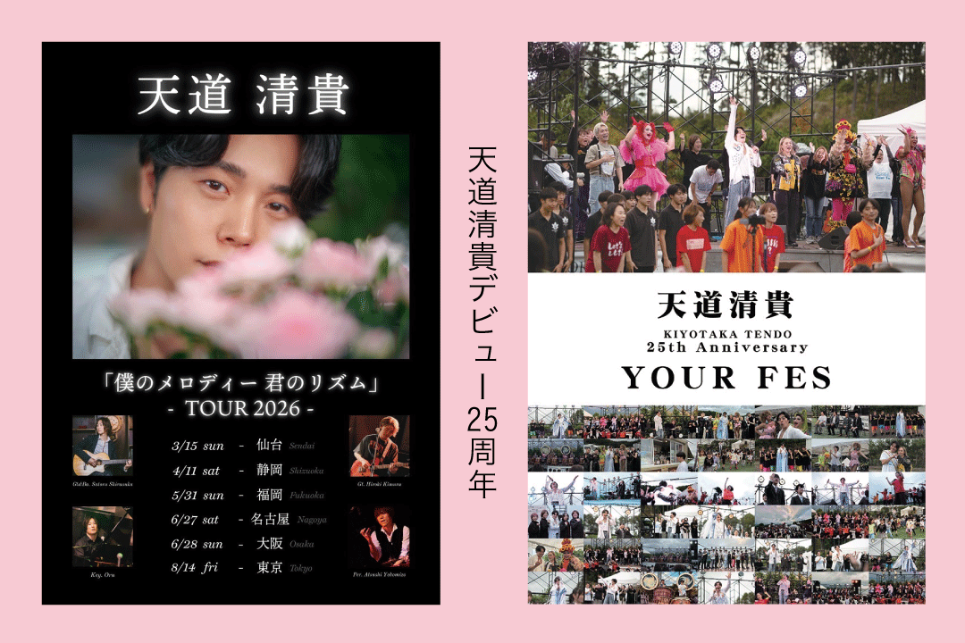 また、デビュー25周年&アルバムリリースを記念した2026年ツアーの開催も決定。仙台、静岡、福岡、名古屋、大阪、東京と全国を巡り、今の天道清貴の声と想いを直接届けてくれる。