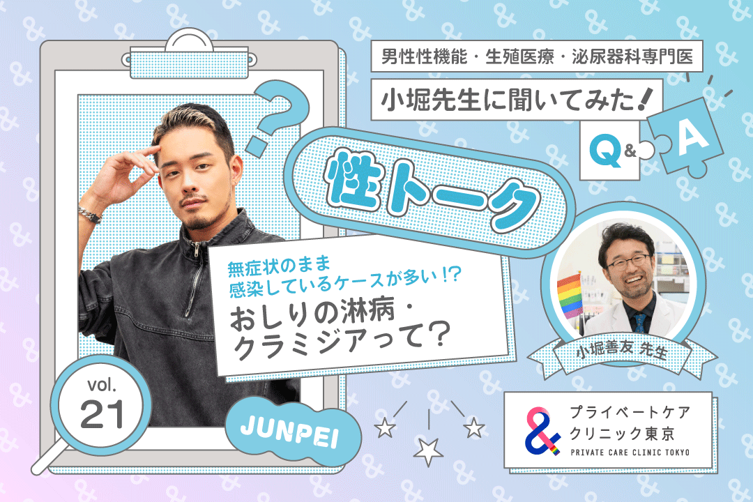 第21回目はゴーゴーボーイのJUNPEIさんと一緒に、おしりの淋病・クラミジアについて、あれこれチェックしていくよっ!!