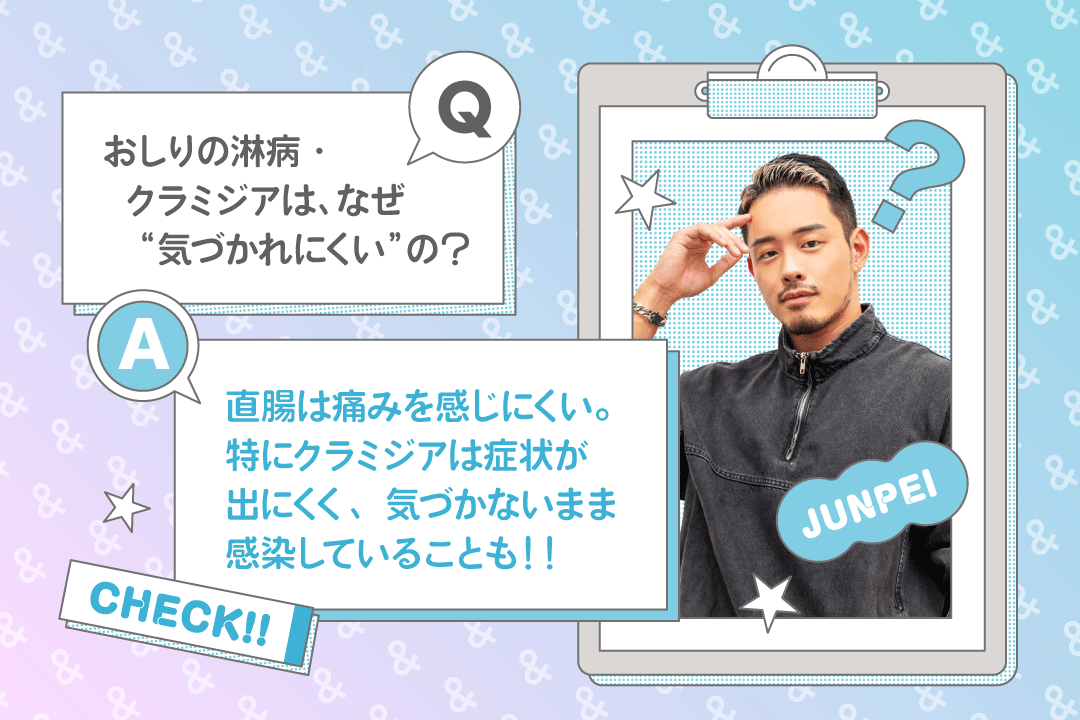 JUNPEI:MSMにおいて、直腸(おしり)の淋病・クラミジアが無症状のまま感染しているケースが多いと聞きますが、なぜ自覚症状が出にくいのでしょうか?